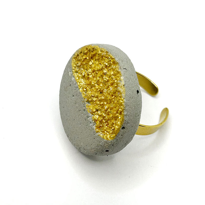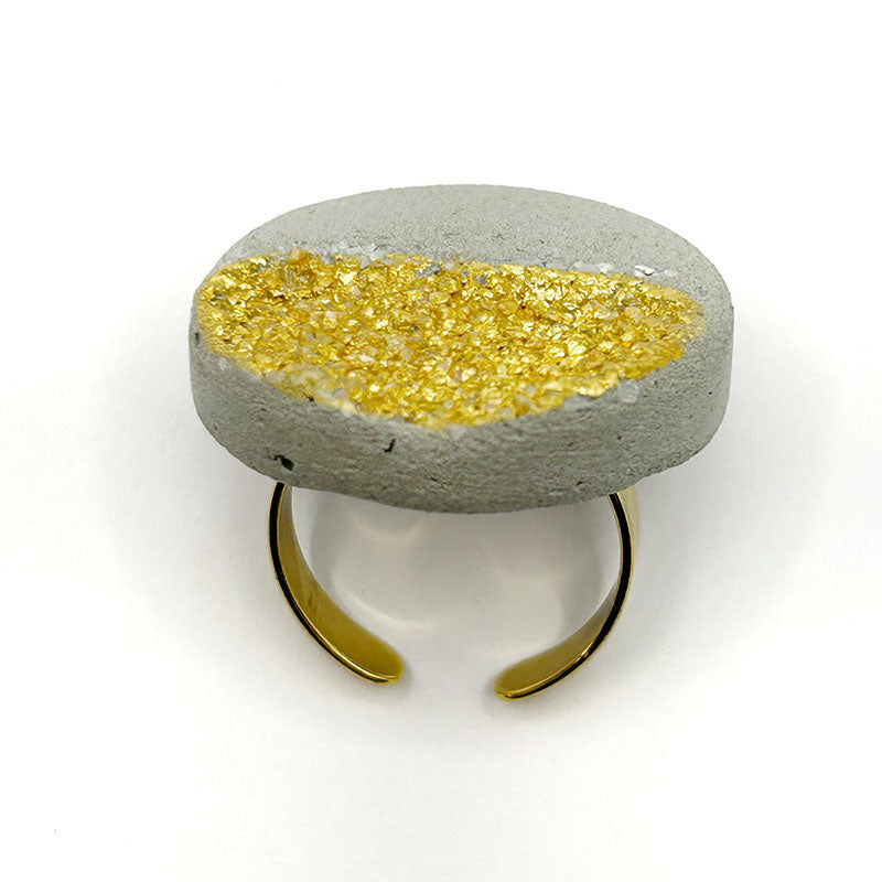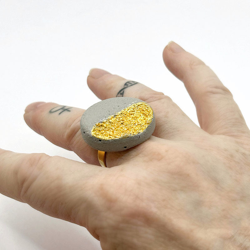 Ring materials: concrete, sand, 23 carat gold leaf.