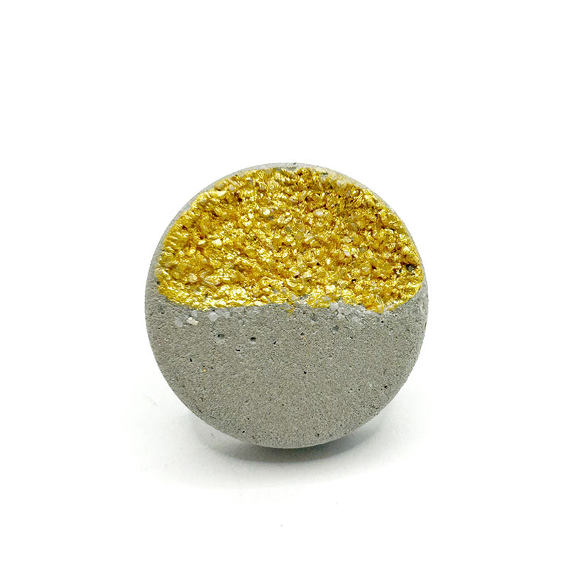 The Inès round concrete ring features a sand print covered with 23-carat gold leaf. This artistic jewel combines the raw elegance of concrete with the sophisticated shine of the golden sand print, celebrating the encounter between the urban and nature. A unique jewel for those who appreciate contemporary and original pieces.