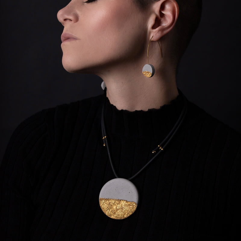Pendant materials: concrete, sand and 23 carat gold leaf.
