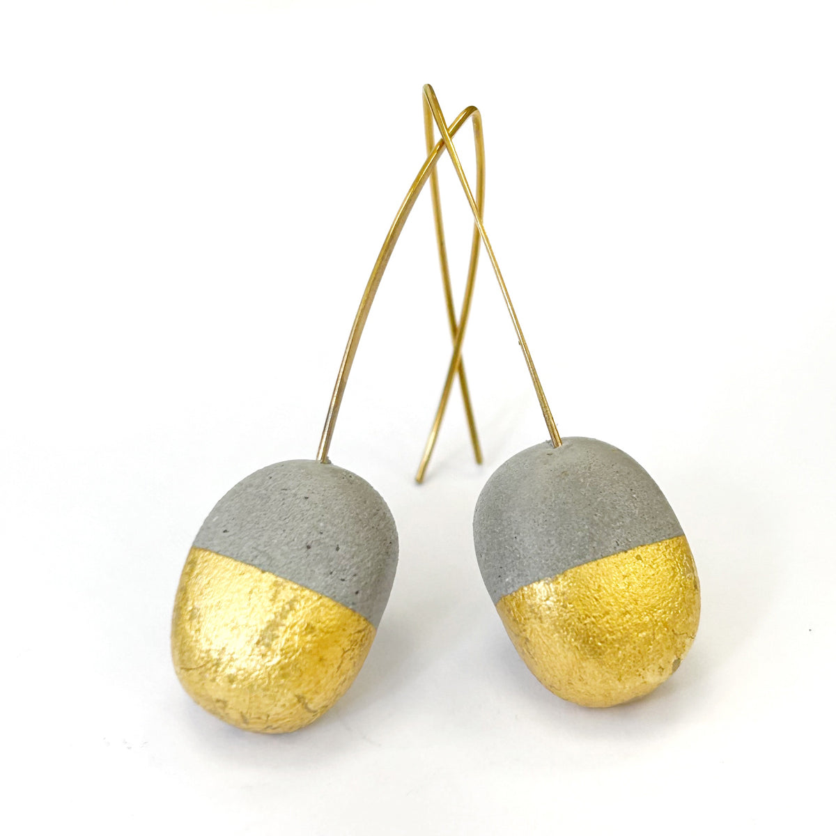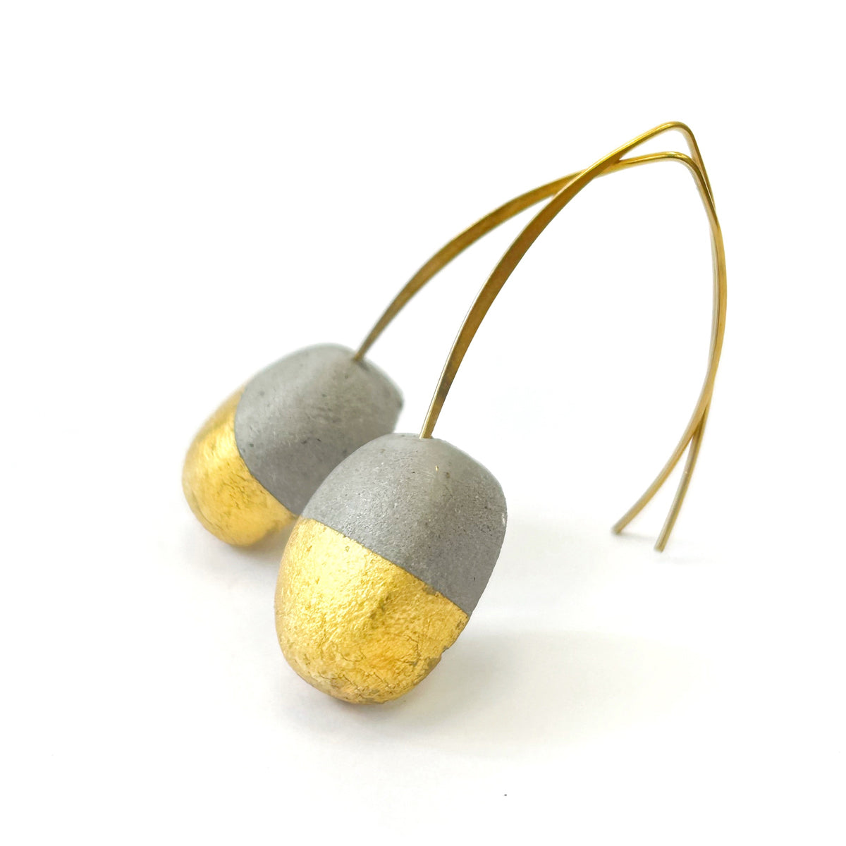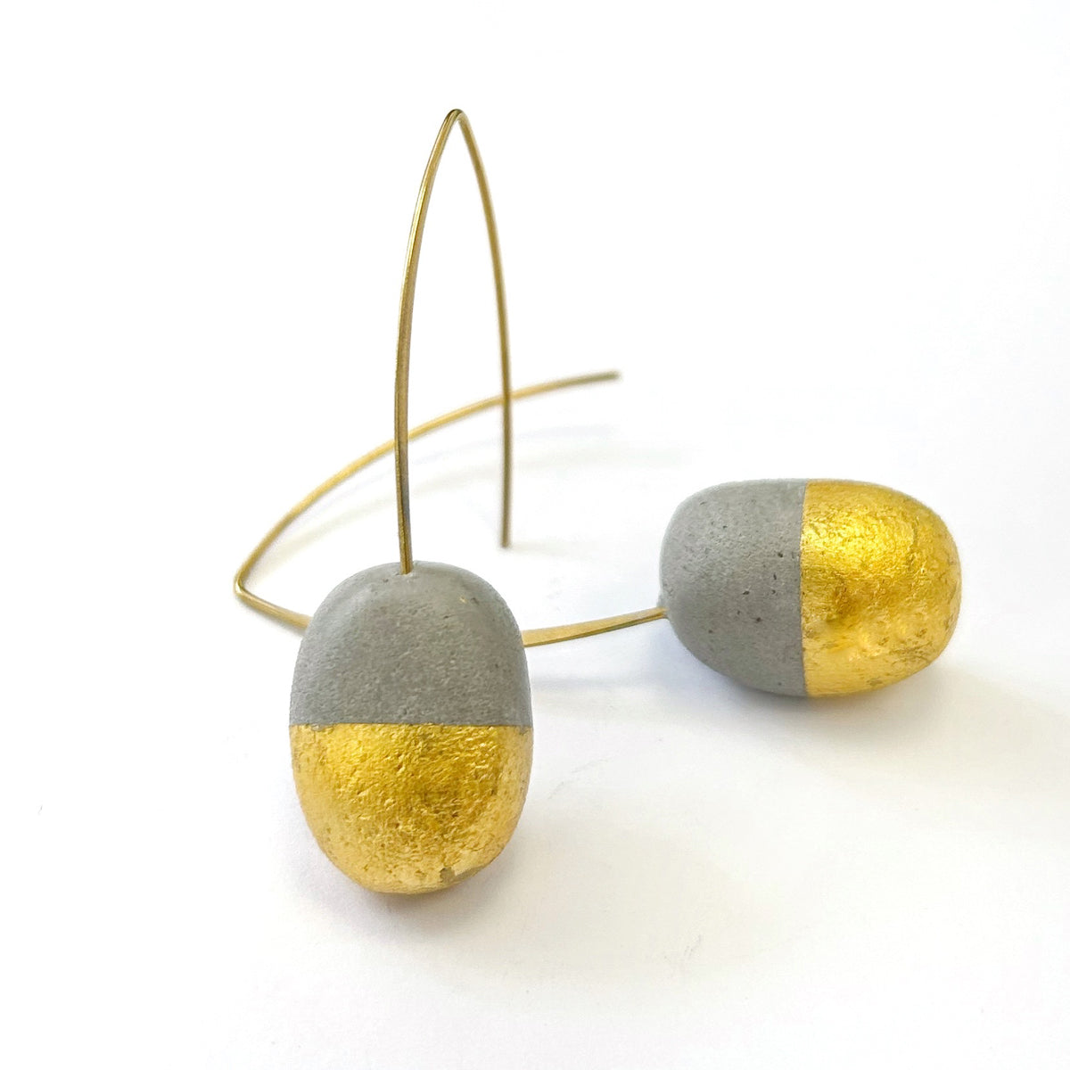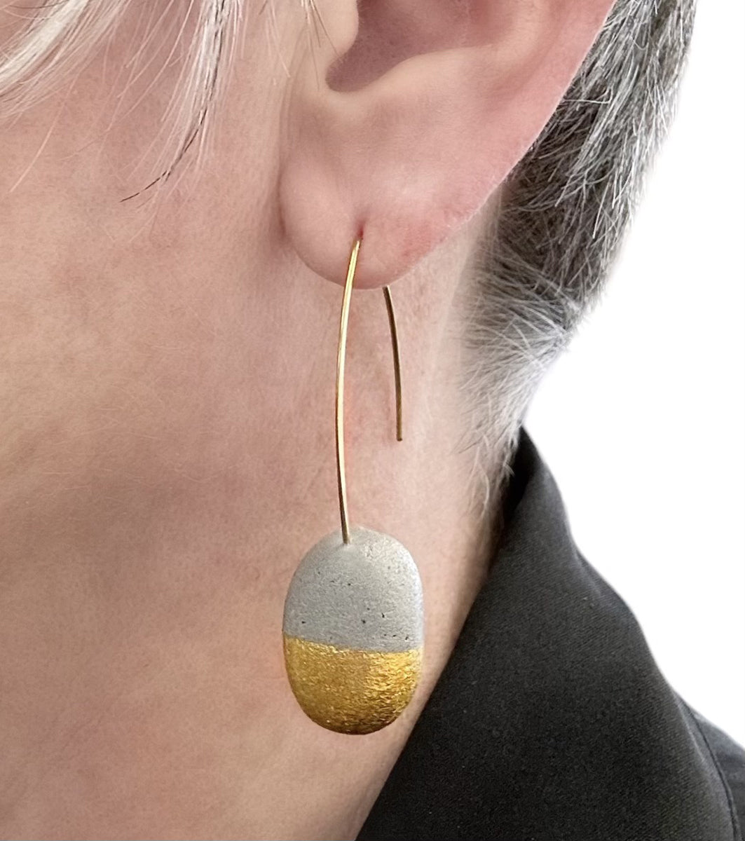 The Bulle earrings play on the golden reflections of sculpted concrete. Geometric and modern, they delicately illuminate your face. Light and not very bulky, they suit all body types.