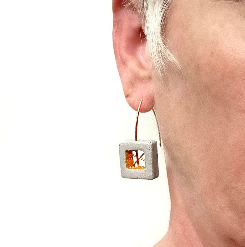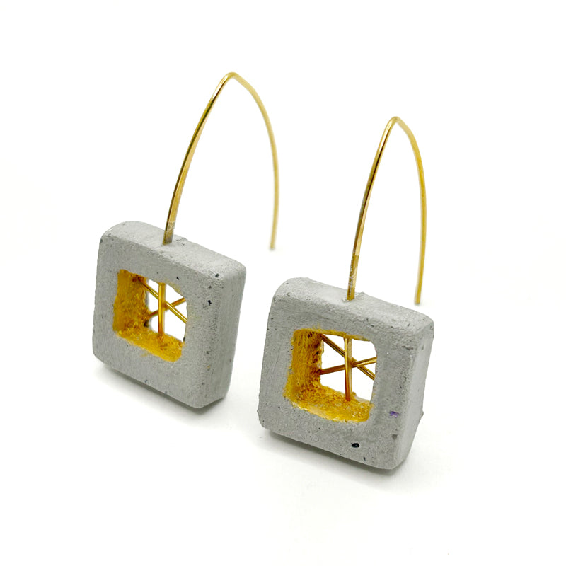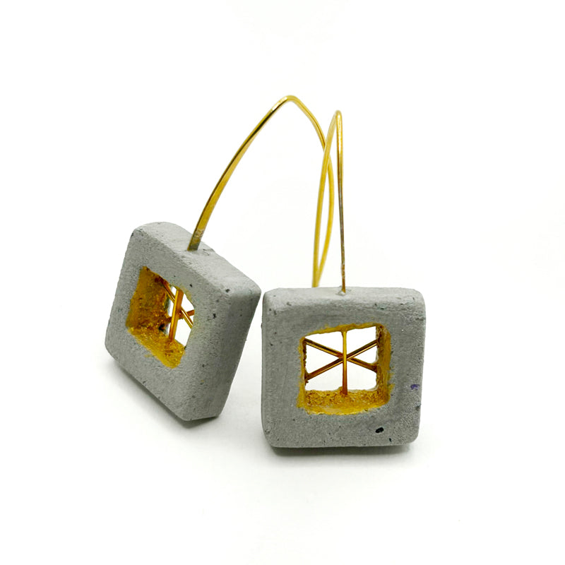 Care: Concrete is a strong but breakable material, so avoid knocking it. Avoid exposing the metal parts of the jewelry to water and cosmetics to prevent them from tarnishing.