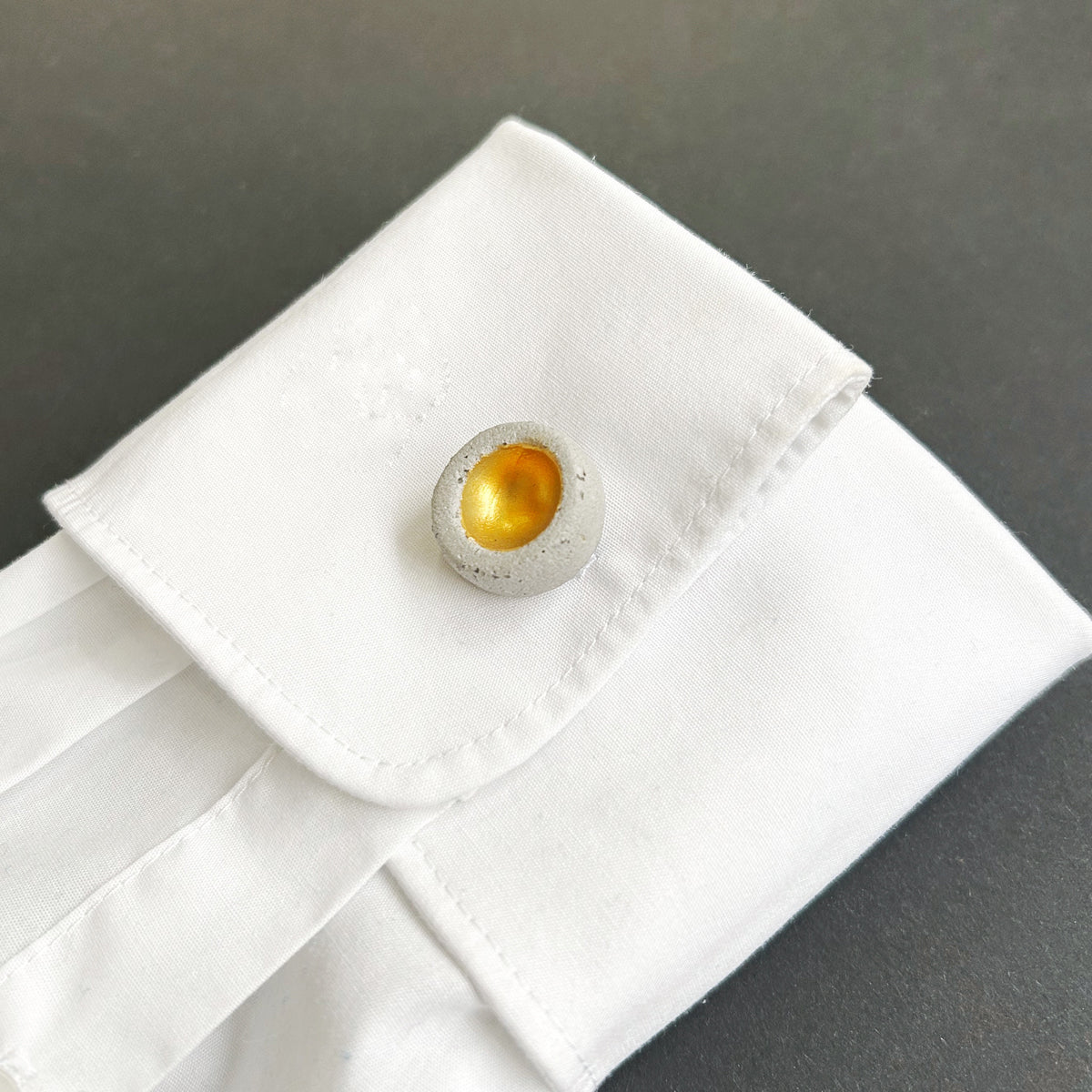 Cufflink materials: natural concrete, gold acrylic paint.
