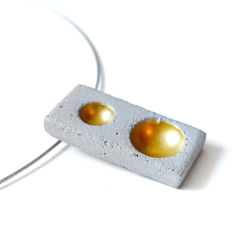 Very stylish, this concrete necklace captures the light in a subtle and changing way. Its pattern evokes suspended bubbles. It will please lovers of minimalist contemporary art.