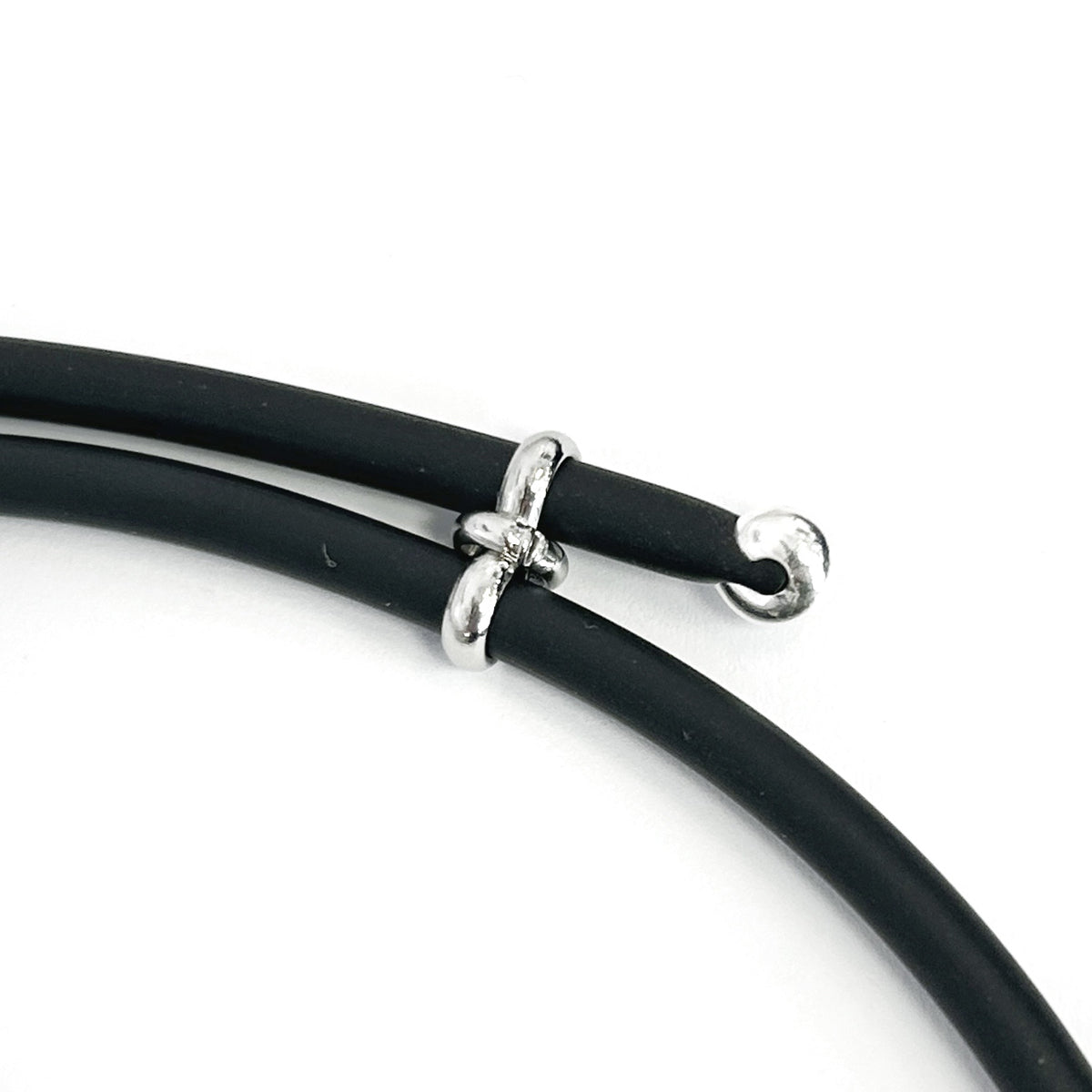 The lace: 80 cm long, made of black rubber. Sliding closure that allows you to adjust the height of the pendant to your outfit.