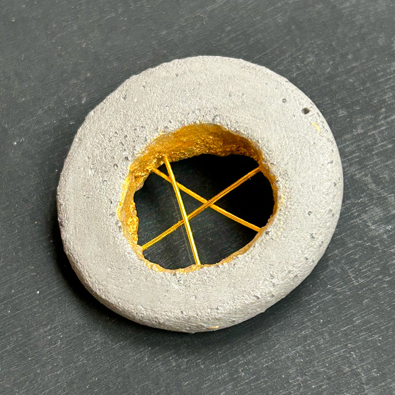 Matériaux de la broche : béton, tiges de laiton, peinture acrylique or.