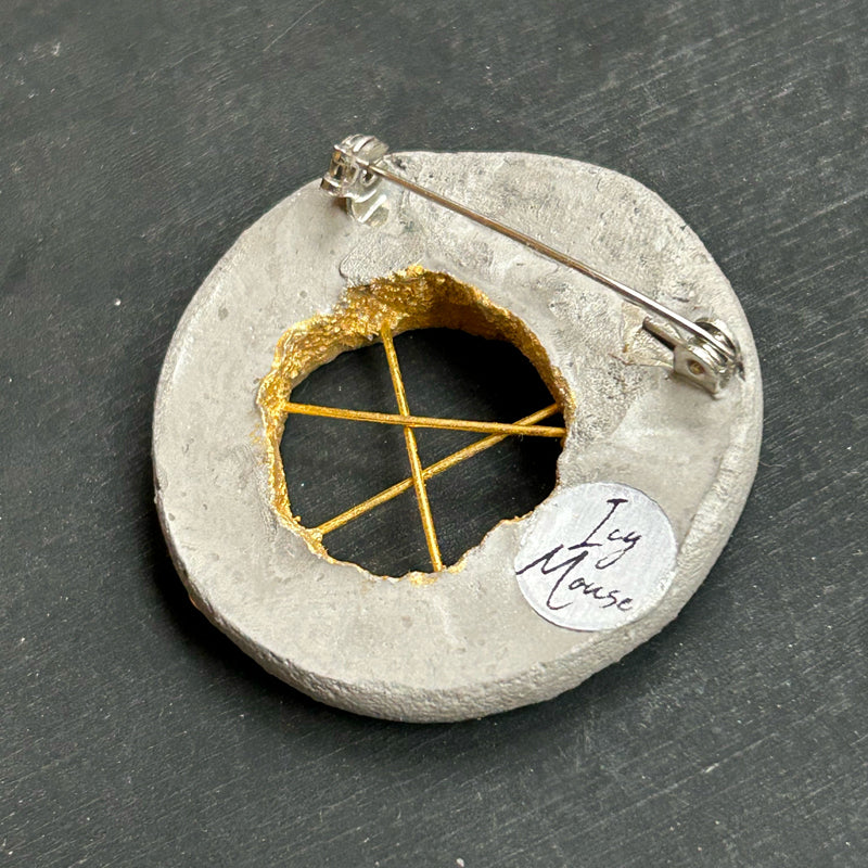 La broche Paloma incarne l’alliance audacieuse entre l’industriel et l’artistique. Conçue à la main à Paris, elle met en valeur la texture brute du béton, sublimée par des éléments métalliques intégrés — tiges entrecroisées, armatures dévoilées — évoquant une structure mise à nu. Pièce unique, elle transforme le matériau du quotidien en objet de désir, à la fois minimaliste et expressif. Un bijou sculptural, à porter comme un manifeste de l’art contemporain.